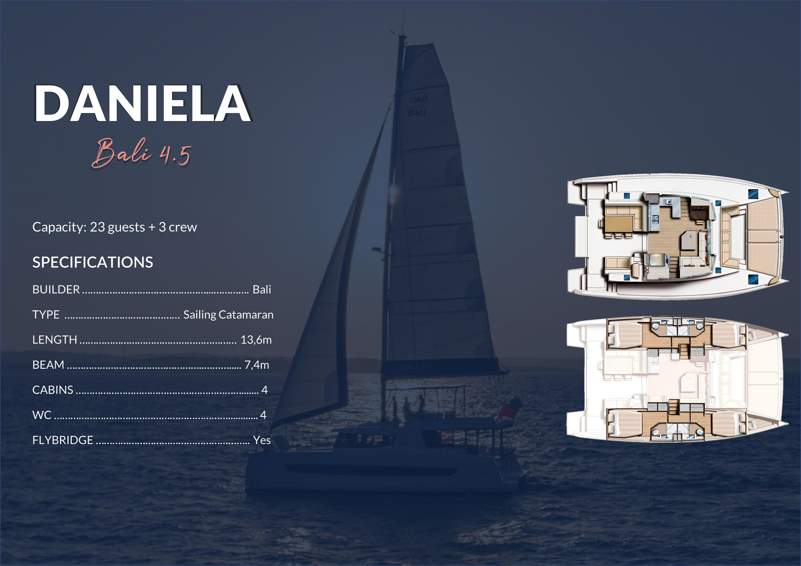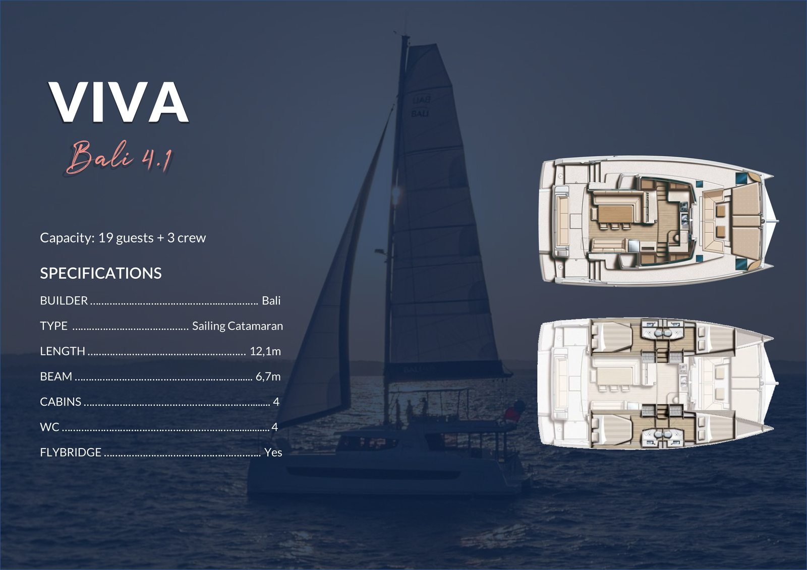 5. Capacity might be changed in case of catamaran's replacement.